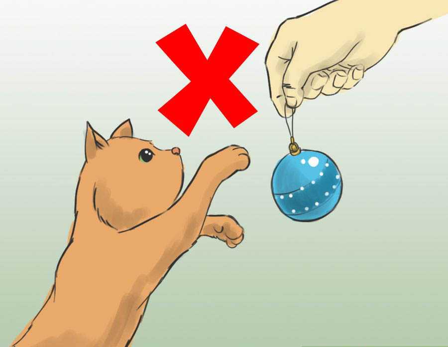 Во-вторых, покачивающиеся в руках и на ветках шарики будут восприняты им как приглашение к игре — как уберечь ёлку от кота в таких условиях?! Вообще, любые ваши манипуляции будут только привлекать внимание животного к дереву и игрушкам. А это совершенно непедагогично!