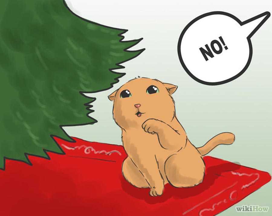 Поставив ёлку, не спешите наряжать её игрушками. Дайте кошке внимательно осмотреть её, держа при этом наготове распылитель с водой. При любой попытке запрыгнуть на дерево или начать лезть по стволу скажите кошке: «Нельзя!» и брызните в неё водой. Это может надолго отвратить животное от знакомства с атрибутом праздника.