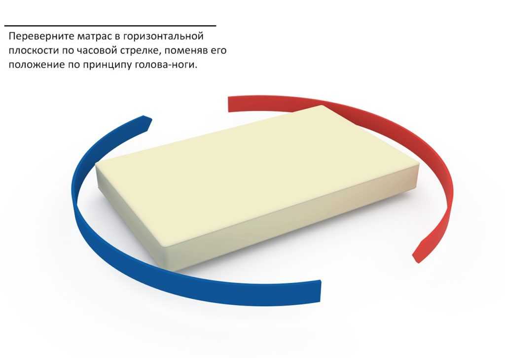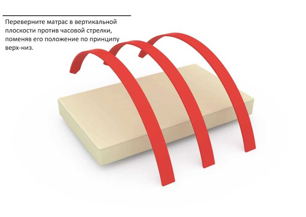 Переворот и поворот. Регулярно производить переворот (верх-низ) и поворот (голова-ноги). Переворот нужно осуществлять не реже, чем раз в полгода. Поворот, в идеале — 1 раз в месяц. Данная процедура положительно сказывается на ортопедических свойствах изделия и служит санитарно-гигиенической мерой.