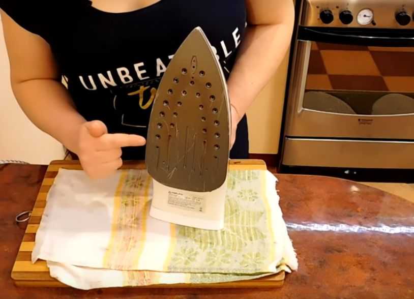 - Когда грязь растворится, включите утюг и прогладьте им кусок натуральной ткани.