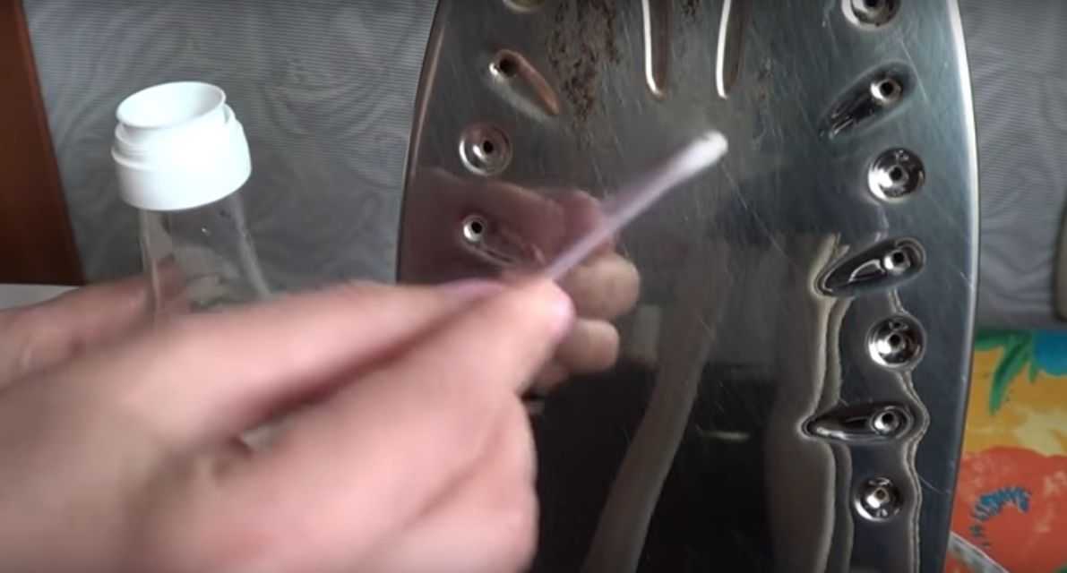 - Смочите уксусом вату и тщательно обработайте гладильную поверхность прибора. Для очистки отверстий воспользуйтесь ватными палочками.