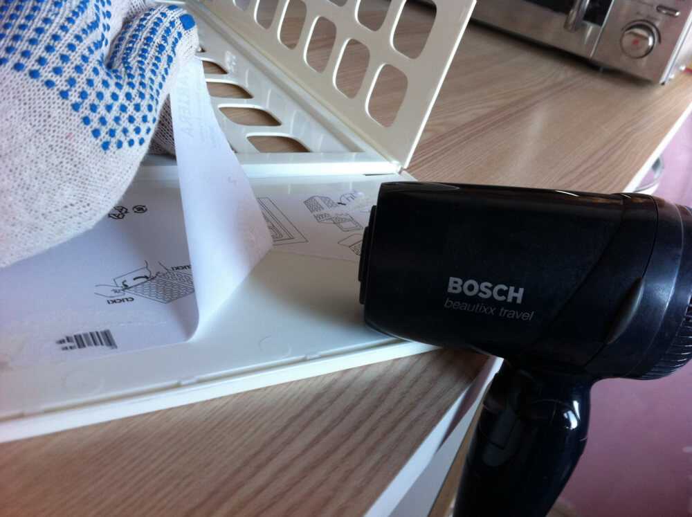 - Процедура повторяется до тех пор, пока наклейка полностью не отойдет от поверхности изделия.