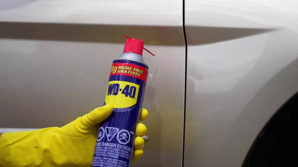 Одно из популярных, хорошо известных многим автолюбителям — WD-40. Поможет легко свести клейкую бумажку.