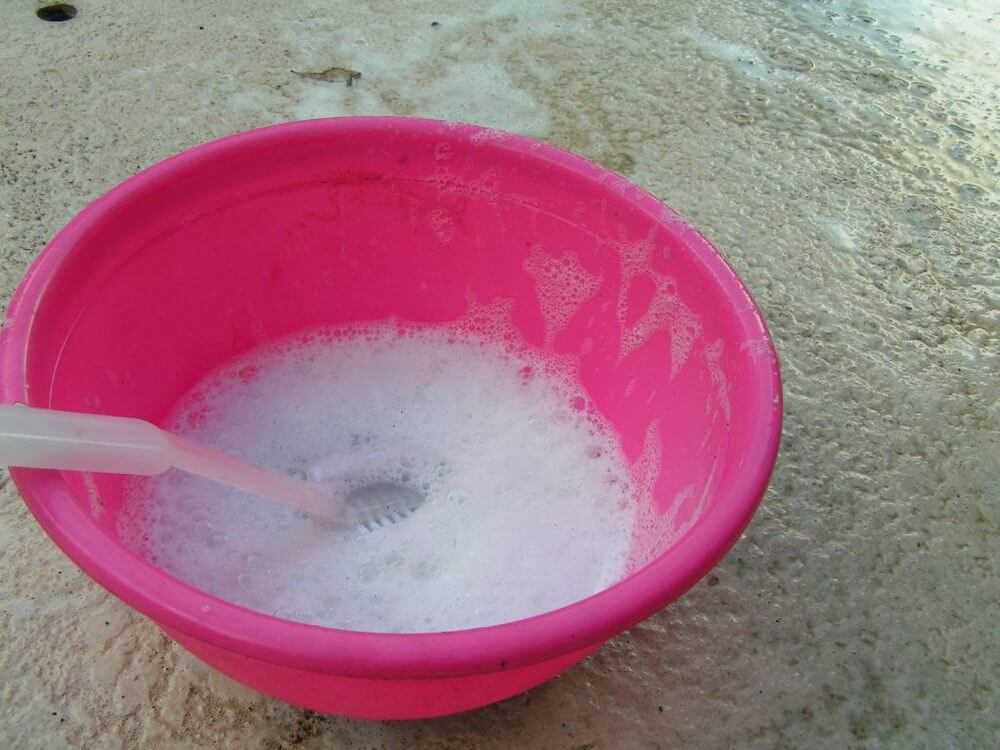 - Затем замываем поверхность мыльной водой или средством для мыться посуды.