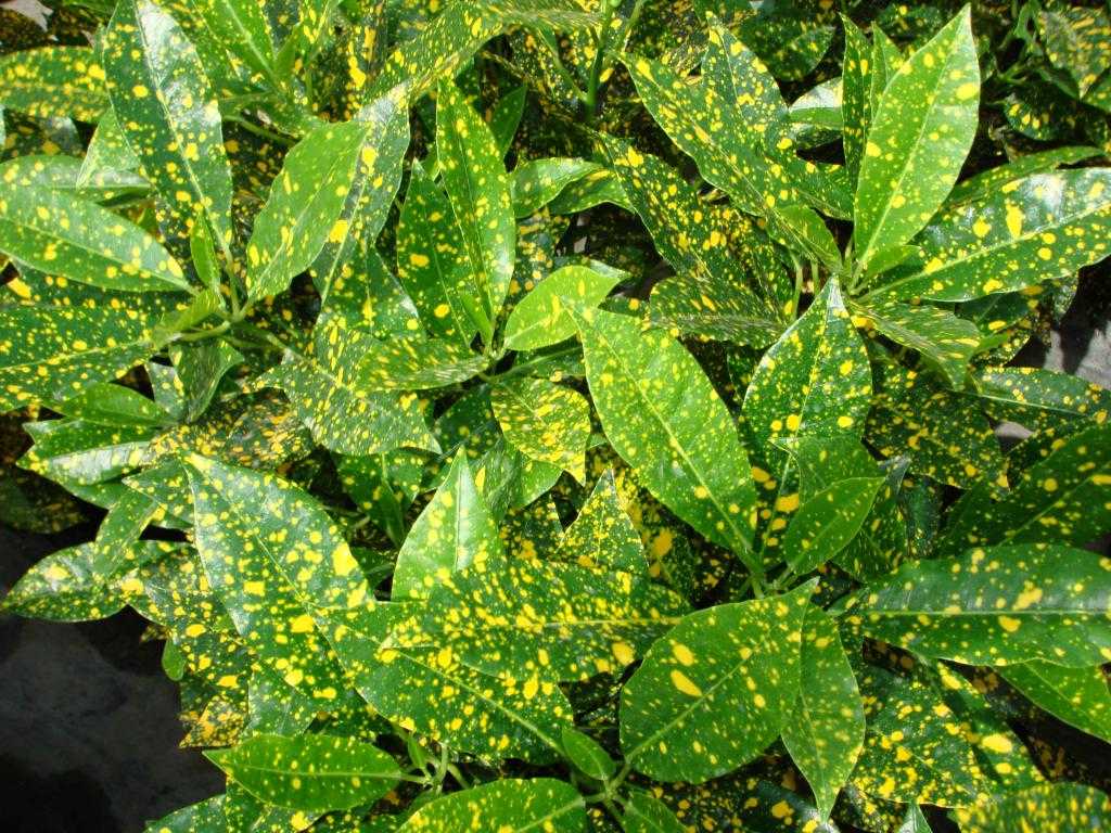 - Кротон аукуболистный широко используется в комнатном цветоводстве. Листья этого растения обладают неравномерной окраской с жёлтыми и зелёными тонами. Листовые пластинки достаточно узкие.