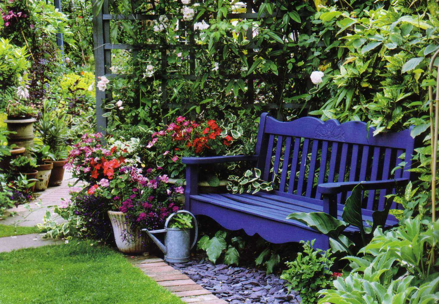Немаловажную роль играет и цвет мебели. Ажурная розовая модель в завитках создаст романтичную атмосферу и французский шик. Для тенистого угла лучше выбрать светлые цвета мебели – игра контрастов всегда выглядит интересно.