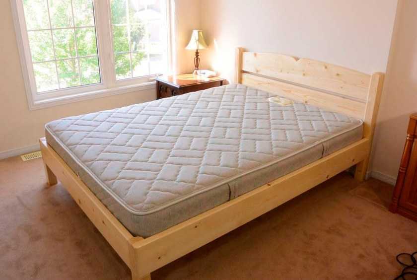 Для самостоятельного изготовления кровати нужны ламинированные древесностружечные плиты, бруски и строганые доски. По размеру матраса следует собрать прямоугольный каркас. Угловой брусок одновременно будет служить ножкой кровати.