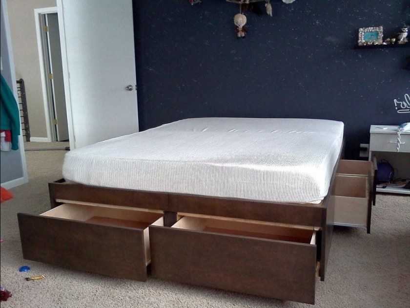 Сделать кровать подиум с ящиками своими руками тоже несложно.