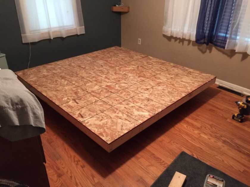 Необходимый этап изготовления кровати-подиума – обшивка фанерой.