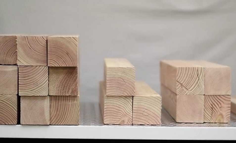 Шаг пятый: необходимо взять брусок дерева 5×2,5 сантиметров и нарезать его на 35 частей, по 120 сантиметров. После чего их следует зашкурить и снять кромки.