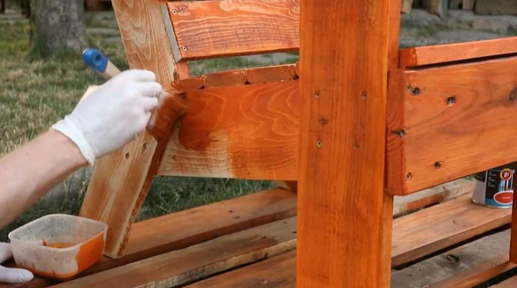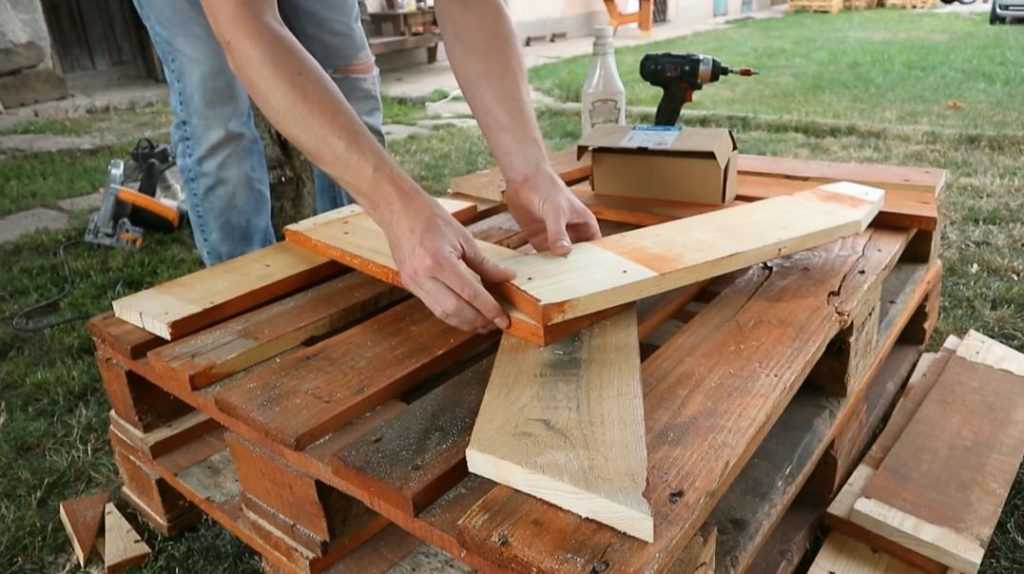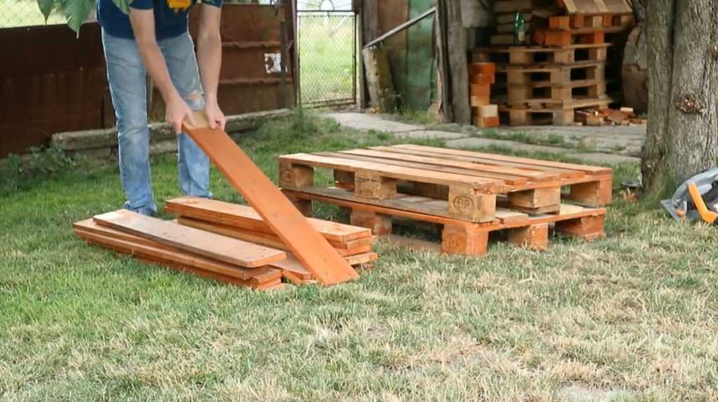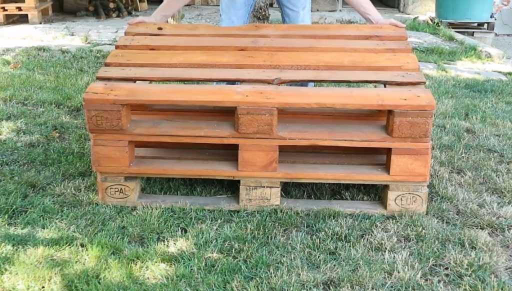 - С помощью лобзика или болгарки паллеты разрезаются пополам, края ошкуриваются и закрашиваются.