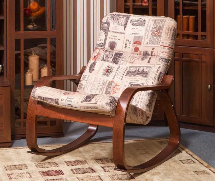 Кресло качалка из клена с плетенной спинкой и сиденьем.