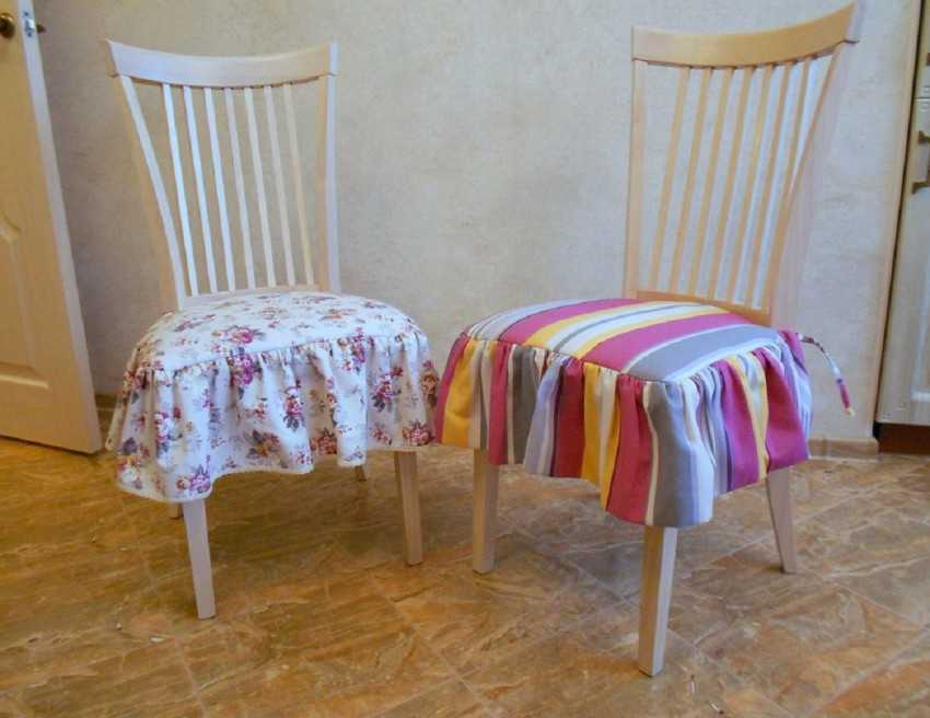 Помимо окрашивания существуют также другие способы украсить мебель. Привычный и беспроигрышный декор для стула – красивые подушки, чехлы и накидки. Они бывают самых разнообразных форм и расцветок. Чтобы превратить в эксклюзивный предмет интерьера обычный стул, можно использовать старые шторы и скатерти, вещи, которые вышли из моды, кружева, ленты, банты и многое другое. Например, подушки можно сшить, взяв за основу старые синтепоновые куртки