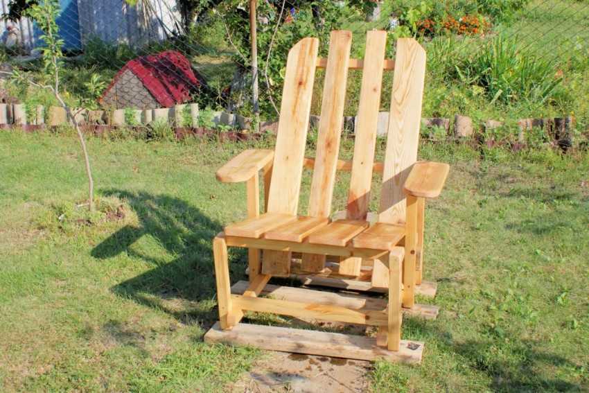 И последний пример – дачное сиденье с неровной модельной спинкой. Доски для её изготовления будут иметь разную длину и несколько отличаться по фактуре и цвету