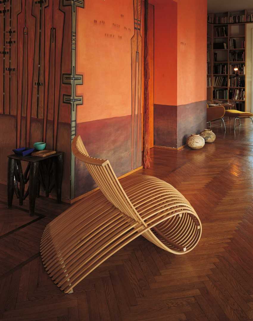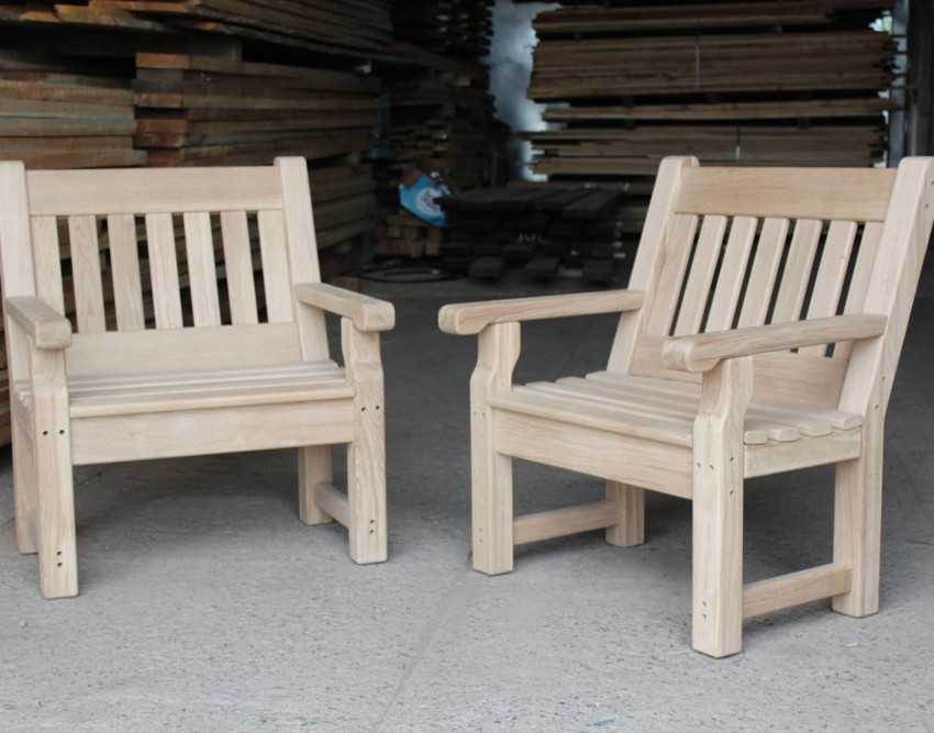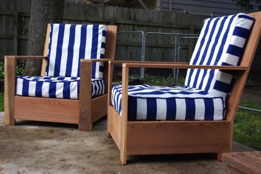 Подлокотники при таком дизайне можно сделать достаточно высокими. Если стул получится широким, нужно будет «подстраховать» его третьим центральным рядом ножек.