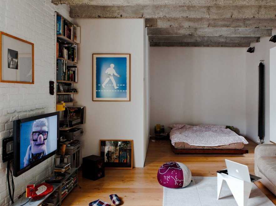 На фото дизайн квартиры-студии 40 кв., выполненный в стиле лофт.