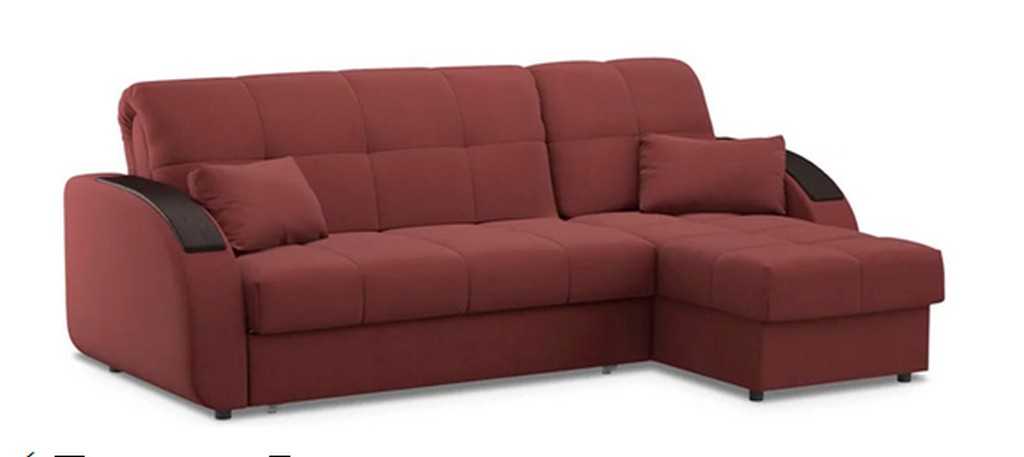 MOON Даллас 018. Модель «Даллас 018» в сложенном виде имеет габариты 193х104х90 см. Здесь реализован механизм раскладывания «аккордеон», поэтому спальное место формируется из трех частей. В разложенном виде размеры дивана 207х193х45 см. Подлокотник имеет две деревянные горизонтальные панели, которые можно использовать как подставки. У дивана есть короб для белья, он расположен под первой секцией.