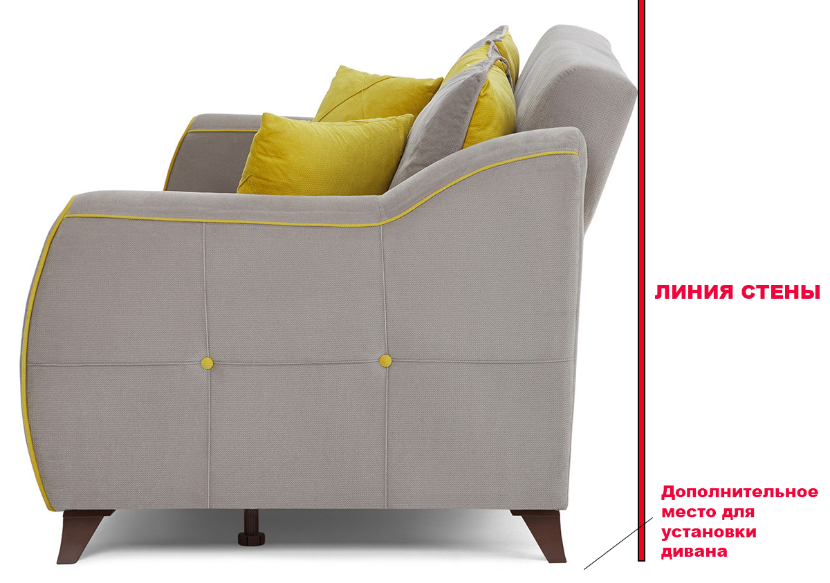 На рисунке видно, что спинка дивана не встает плотно к стене, значит такой диван требует дополнительной площади.