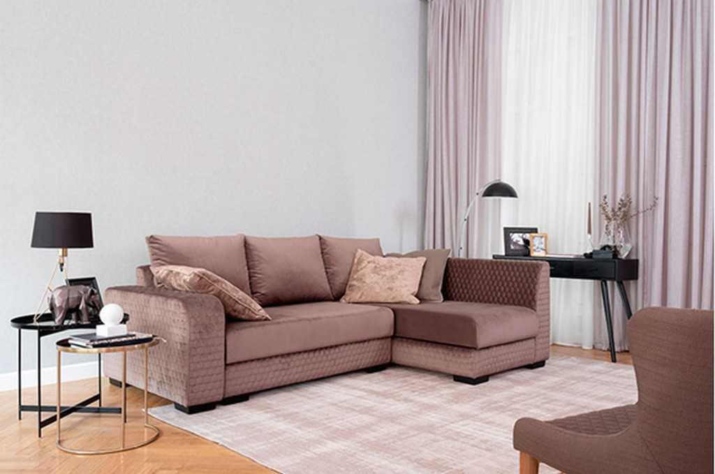 Пинскдрев Лоренцо. Диван углового типа этой модели имеет обивку из велюра с различной текстурой и представлен в разных тонах. Благодаря этому возможно изготовление под стиль: модерн, неоклассика, современный и лофт. Конструкция состоит из массива дерева, ДСП и фанерных вставок. Внутри размещен пружинный блок Bonnell, что говорит о высоком качестве изделия.