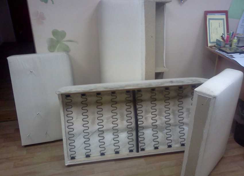 Продавленные поверхности ухудшают внешний вид, снижают эксплуатационные свойства. В этом случае нужна замена поролона, синтепона, в отдельных случаях – пружинных блоков. Крупные провалы внизу возникают из-за высоких нагрузок – пружины просто пробивают дно, их требуется достать, заменив поврежденный низ фанерой, ДВП. Пружины допустимо полностью удалить, сменив на толстый слой поролона, мебельный силикон, другие наполнители.