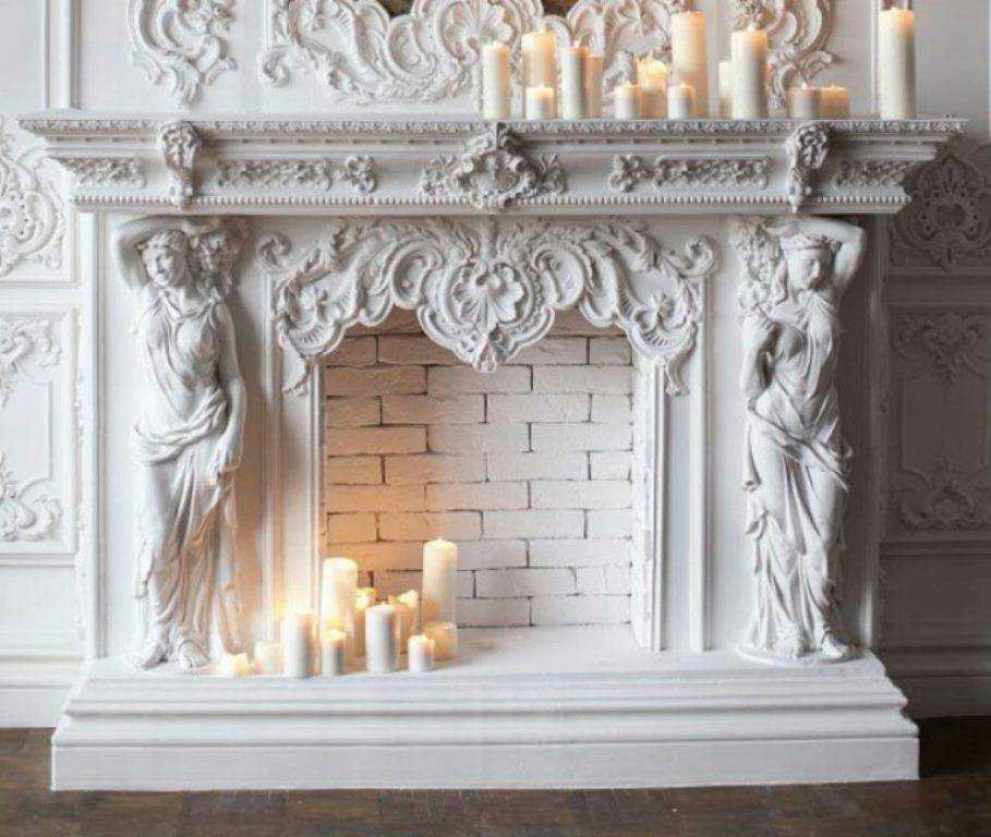 Процесс декорирования — самый творческий этап создания камина и самая приятная работа, во время которой конструкция приобретает красивый, товарный вид. Используйте для декорирования широкий молдинг и элементы лепнины, с помощью которых можно подчеркнуть элегантный и изысканный стиль камина. Крепить их следует на клей. Затем конструкцию следует покрыть белоснежной водоэмульсионной краской, на элементы лепнины наложить тон с помощью заранее подобранного колера. Если есть желание, лепнине можно придать золотистый оттенок. После камин покрывается бесцветным лаком на водной основе и после высыхания устанавливается на выбранное место, украшается декоративной вазой, цветочными вазонами, статуэтками или прочими предметами декора. Не бойтесь экспериментировать, и результат будет поистине неожиданным и необычным!