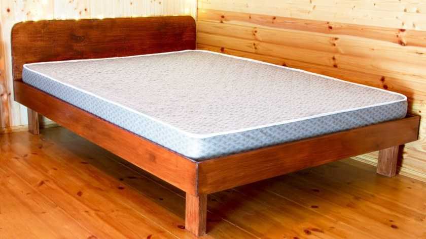 Внутреннюю часть прямоугольного каркаса застилают обрезной строганой доской. Перед этой операцией доски следует тщательно обработать шлифовальной машинкой, чтобы поверхность не имела шероховатостей. Доски укладывают на фиксирующую планку каркаса и крепят шурупами, оставляя промежуток в двадцать миллиметров для вентиляции матраса.