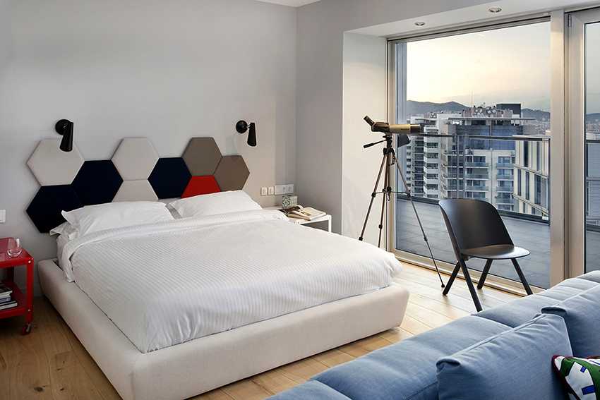 Мягкое изголовье в виде пчелиных сот удачно впишется в современный интерьер