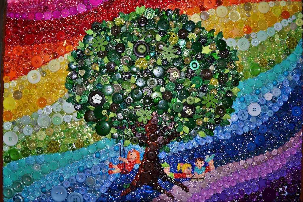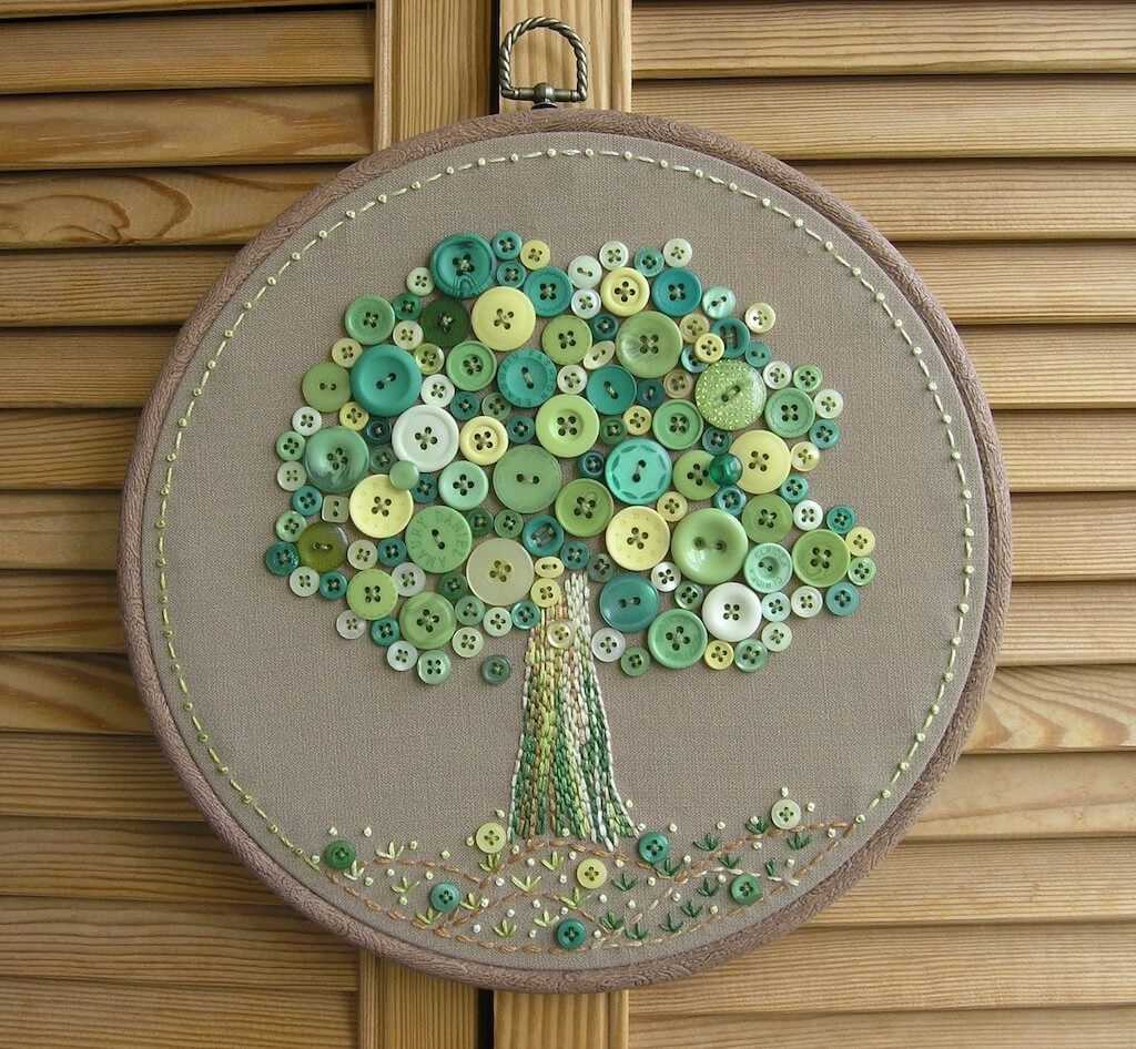 Надоели банальные варианты для украшения стен? Создайте оригинальное панно из пуговиц. Посмотрите, как красиво оно смотрится.