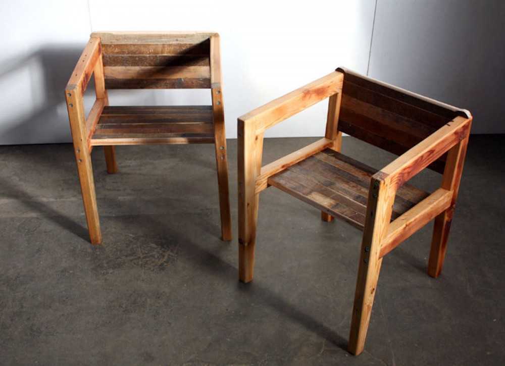 Совет: если стул кажется вам слишком сложной конструкцией — попробуйте собрать табуретку из дерева, фанеры или ДСП. А ценителям комфорта рекомендуем присмотреться к креслам из поддонов и шин.