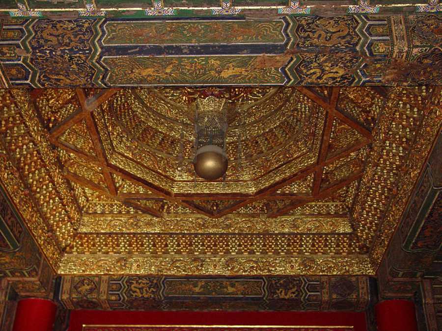 Этот потолок зала Союзов, в котором хранятся церемониальные императорские предметы — поистине самый прекрасный образец мастерства китайских архитекторов и дизайнеров. Как в смысле красоты, так и в плане пропорции и геометрии.