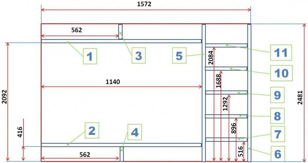 Если у вас будет чертёж, который вы продумали до мелочей, изготовить шкаф будет намного проще