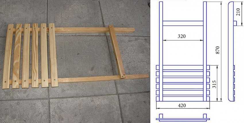 Если сделать складной стул со спинкой, его удобно будет использовать, например, в деревне. Он легко выносится на улицу, а при хранении в доме не занимает много места. Следует помнить, что такие модели не предполагают раскачивания либо неравномерного давления на сиденье. На них легко перевернуться, нарушить центр тяжести. Не стоит использовать стул, сделанный из дерева своими руками, чтобы становиться на него сверху. Его можно легко поломать, упав при этом самому, особенно, если вес человека значительный.