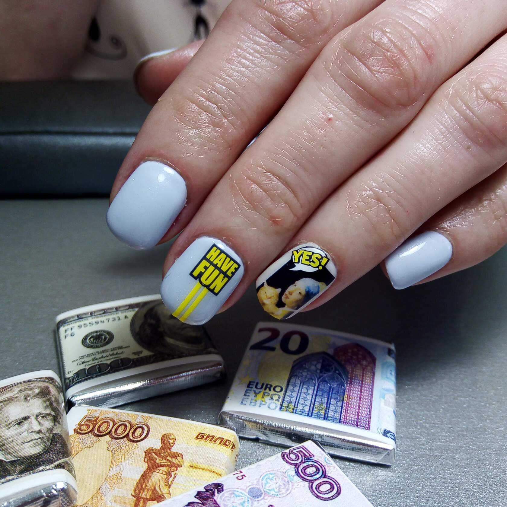 Оригинально смотрятся на ногтевых пластинах всевозможные мордашки животных, кошачьи следы, смайлики, герои японской анимации и портреты кумиров. Остаётся только определиться с сюжетом.