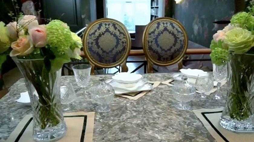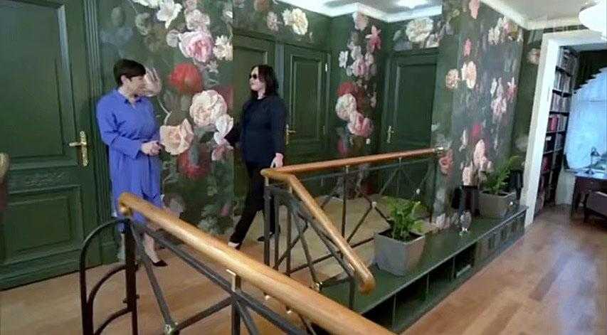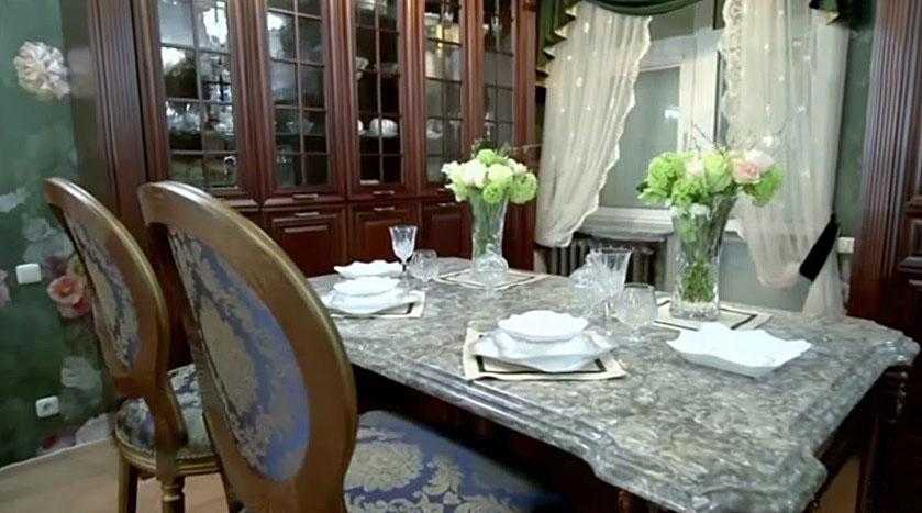 Так как муж Гузеевой не только любит готовить, но и популярен как ресторатор, на втором этаже апартаментов разместилась просторная и удобная кухонная зона в 55 квадратных метров. Дизайн интерьера выдержан в строго викторианском стиле, а помогать в создании оформления пригласили профессионалов своего дела. Визитной карточкой пространства выступают имиджевые обои богатого зеленого цвета с крупными цветочными орнаментами. По желанию артистки узоры были изготовлены вручную, как и изящные фрески. Все элементы декора составляют одну большую картину.