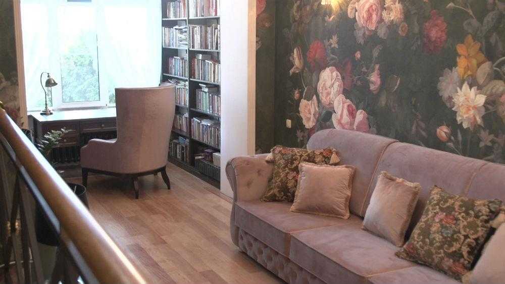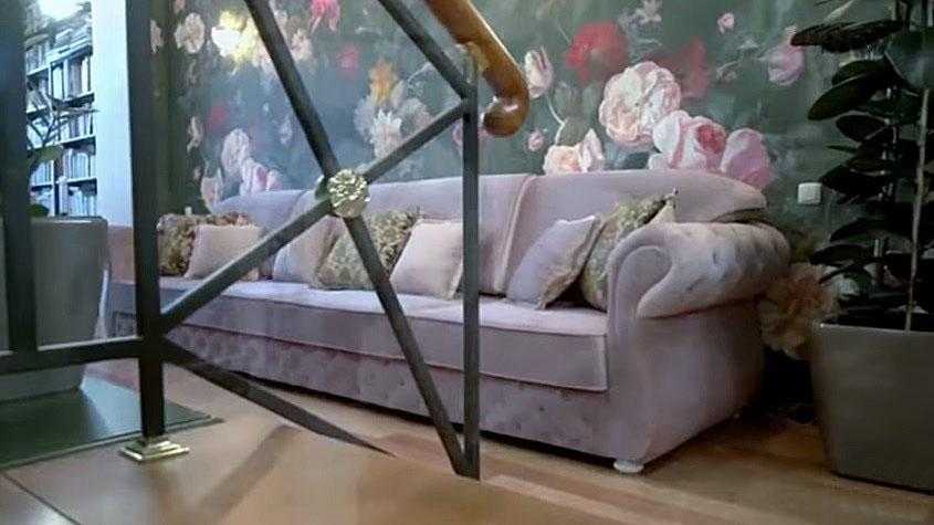 Но ещё нельзя не упомянуть о всеми любимом в семейном кругу бледно-лиловом диване, который занял остальную часть гостиной. Говорят, что стоимость такого дома в районе Куркино начинается от 60 млн рублей.