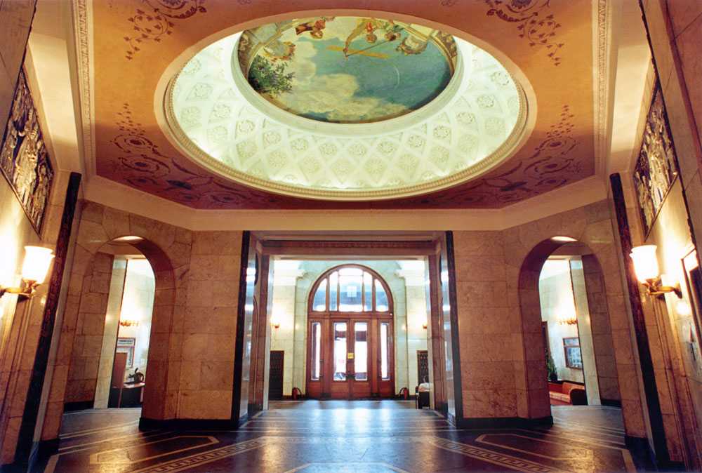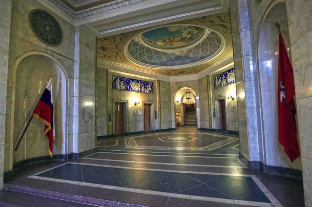 На этажах главного корпуса всё смотрится довольно роскошно. Особенно по советским меркам.