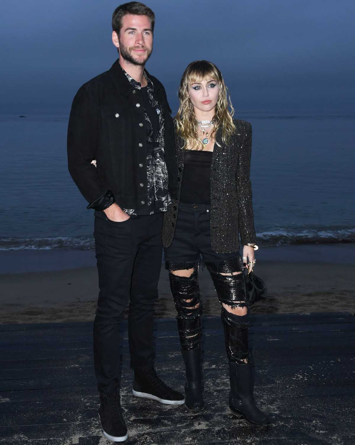 Лиам Хемсворт и Майли Сайрус на показе Saint Laurent (июнь 2019)