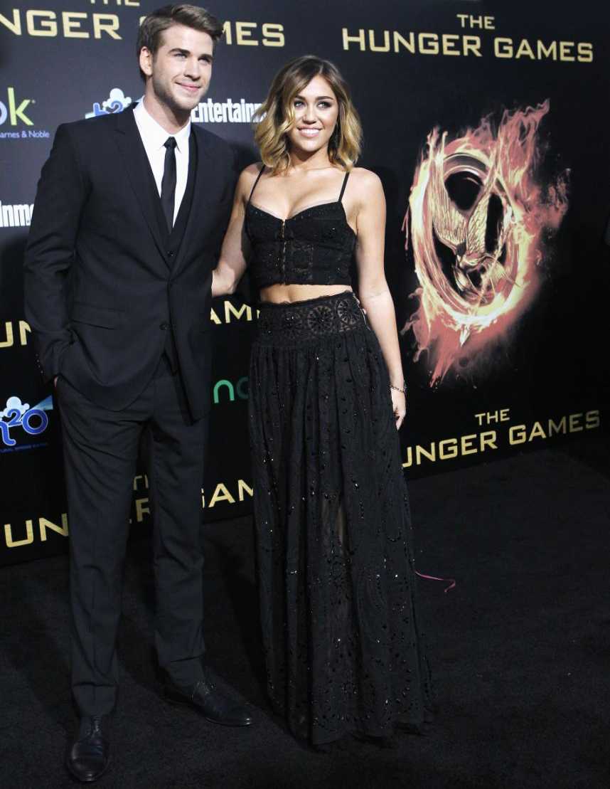 Лиам Хемсворт и Майли Сайрус на премьере фильма «Голодные игры» (март 2012)