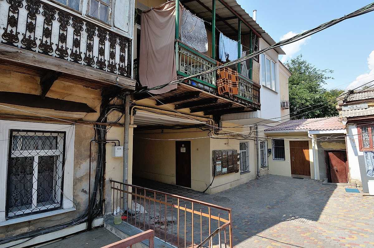 Вообще изначально мы направились в дом №29, который больше похож на дворы на Молдаванке. Местный дядечка характерной одесской внешности, увидел меня с камерой, прищурил правый глаз спросил: «И что это будет?» Интересуемся историческими одесскими двориками, отвечаю. Тогда вам напротив – там «Ликвидацию» снимали, а завтра приедет Квартал 95 во главе с Вовой Зеленским.