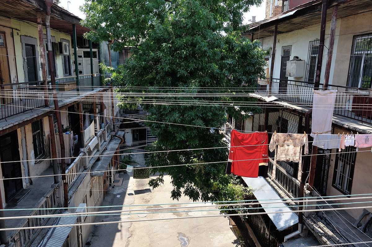 Традиционное белье и веревки. В выходной день, наверное, стирают мало или быстро высыхает.
