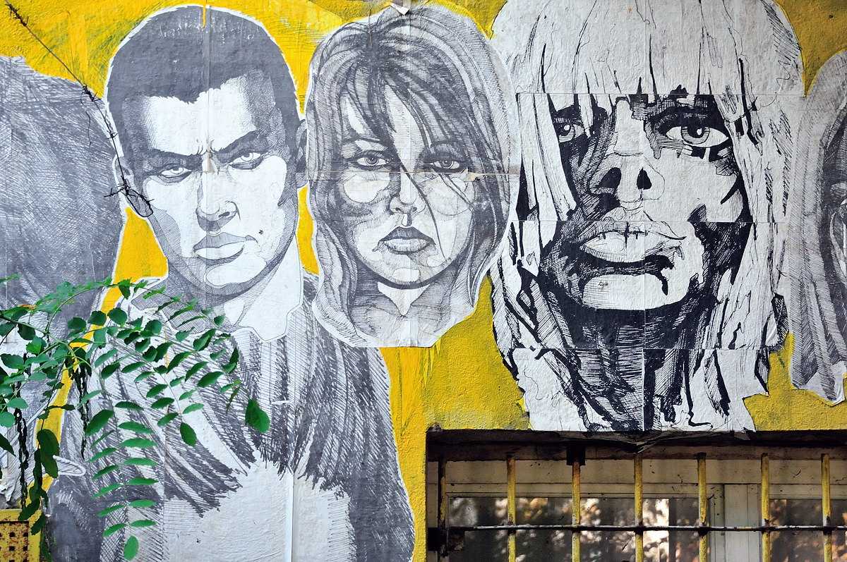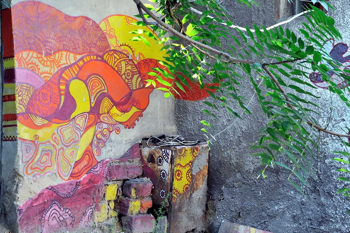 В некоторых дворах присутствует дополнительный тюнинг для привлечения туристов в виде настенных рисунков или аппликаций.