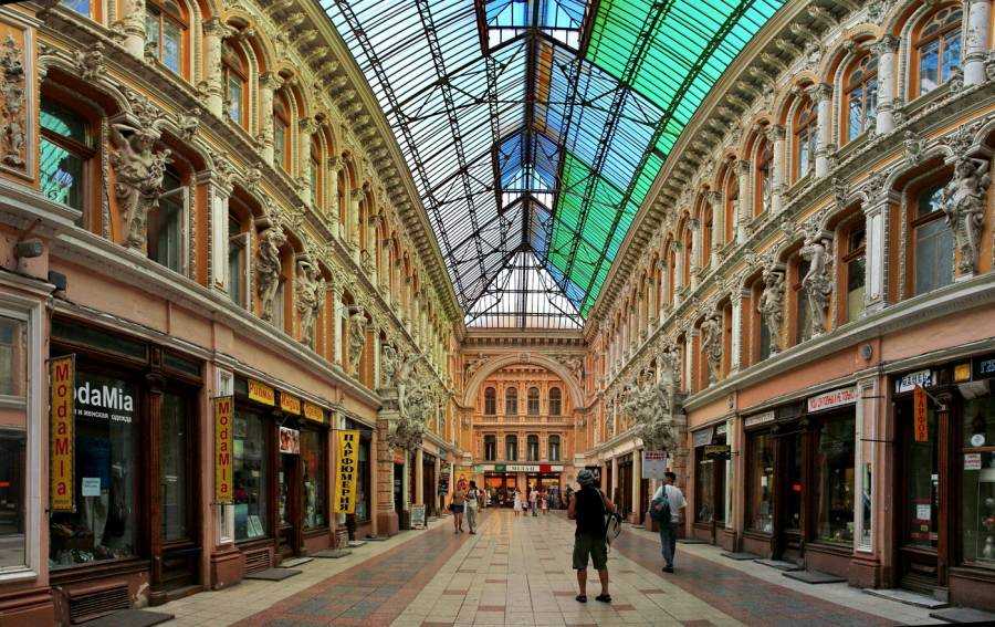 Великолепнейшее здание радует взор своим внутренним и внешним убранством – изящными барельефами, орнаментами. Внутри Пассажа властвуют ощущения пространства и полета.