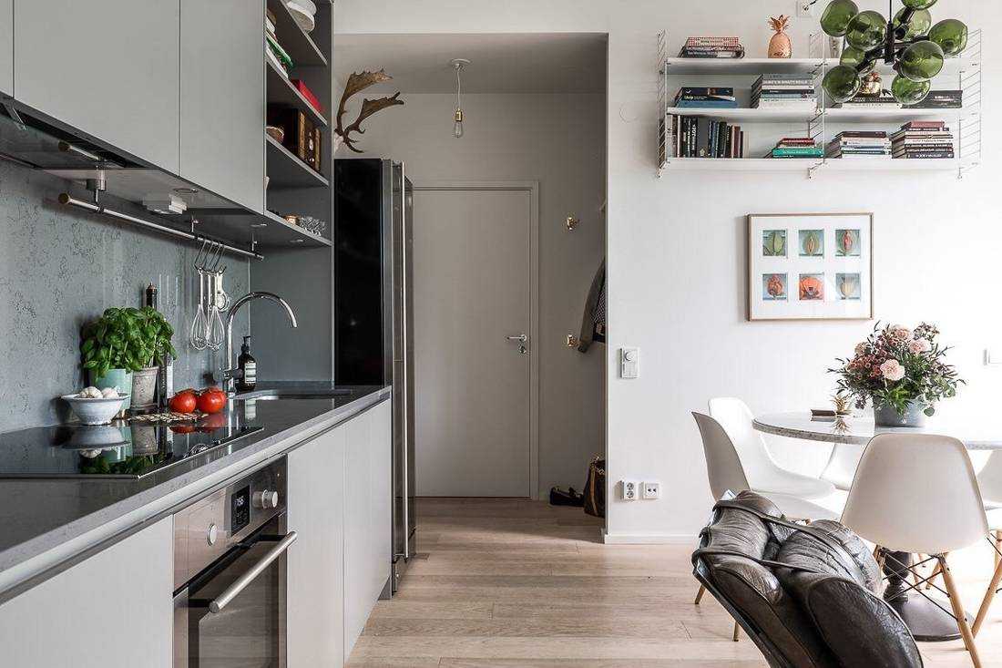 Но в таком случае необходимо тщательным образом продумать функциональные системы хранения ближе к входной двери, где можно будет сразу прятать верхнюю одежду и обувь, которая явно не добавляет эстетической составляющей такому интерьеру.