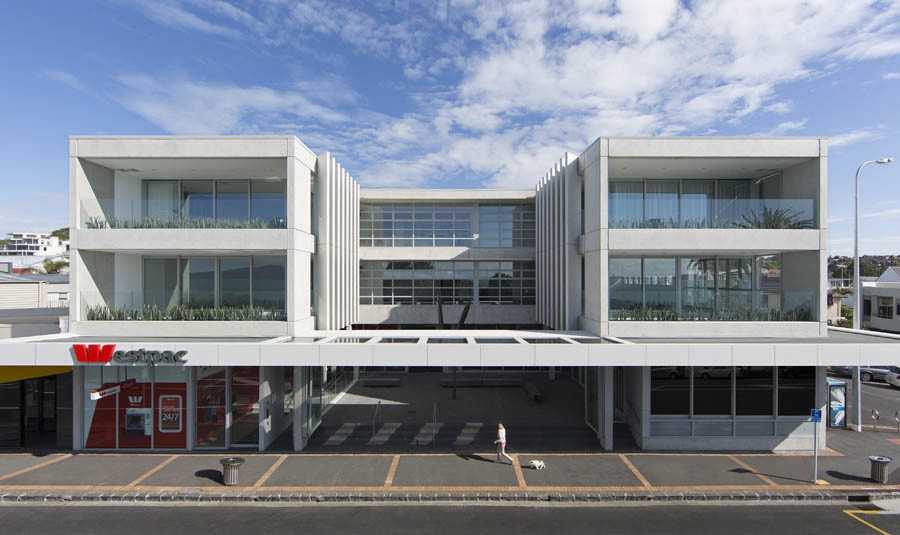 Окружающая среда новозеландского побережья очень быстро подвергает коррозии большинство материалов — жилые здания становятся недолговечны. Поэтому австралийские архитекторы из Ian Moore Architects, проектируя новое жилое здание возле Окленда, для фасада выбрали простые, но долговечные материалы: бетонные панели, специальным образом обработанный алюминий, стекло. Полы во всем здании выполнены из базальта или орехового дерева.