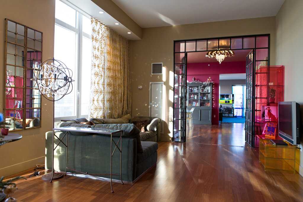 Нетребко любит в свободное время совместно с мужем посидеть и посмотреть хороший фильм. Гостиная соединена с парадной столовой. Переход сделан из стеклянных дверей, высотой до потолка. Так как соседняя комната розового цвета, то кажется, что перегородка — это большой красивый витраж.
