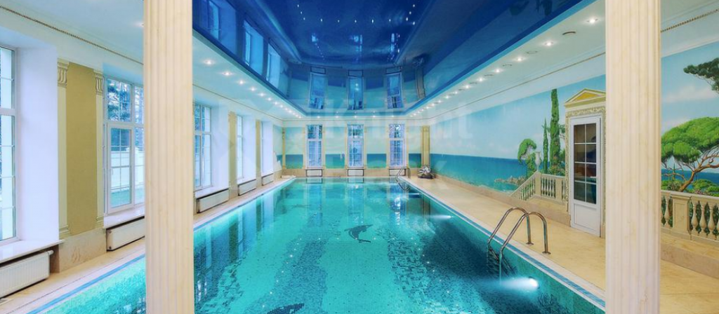 В особняке есть все для комфортного существования: массажный кабинет, домашний кинотеатр, спа-салон, бильярдный зал и бассейн. Для гостей предусмотрены отдельные комнаты с санузлами и гардеробными.