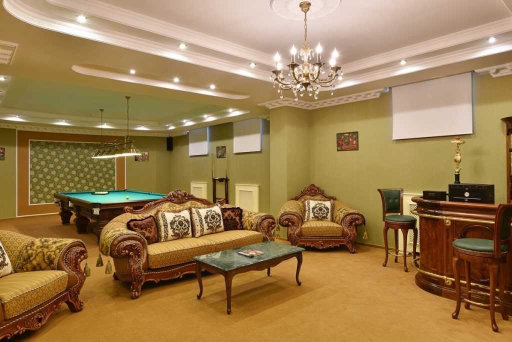 Внутри особняк наполнен дорогой мебелью, лепниной и позолотой. Антикварная посуда, редкие люстры с канделябрами — будто настоящий дворец царской знати.