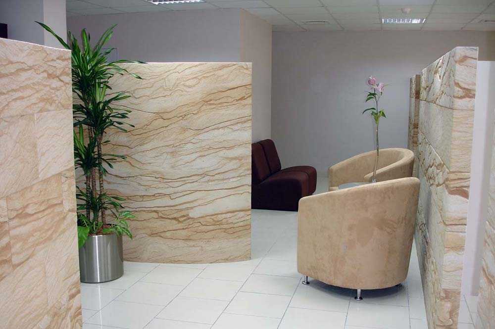 Гибкий камень используется для отделки стен, ниш и даже мебели