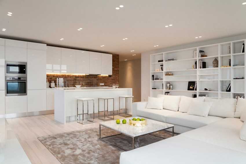 Еще более строгим требованиям подчиняется второй вариант перепланировки – создание квартиры-студии с максимально большим общим пространством. Даже квартиры в самых современных зданиях чаще всего имеют стены, которые запрещено сносить. В таком случае пригодятся дизайнерские приемы, позволяющие создать ощущение единого пространства без ущерба для безопасности.