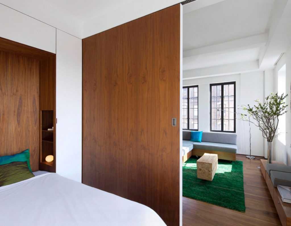 стационарные перегородки, которые выполняются из дерева или гипсокартона. Этот вариант значительно лучше ширм, однако он требует определенных денежных вложений. Его лучше использовать в том случае, если требуется полностью изолировать одну часть помещения от другой;